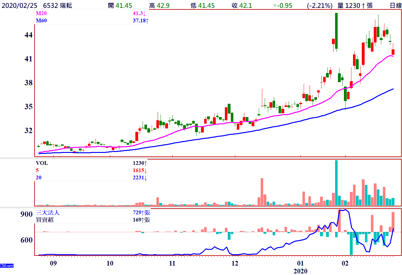 瑞耘(6532)是半導體零組件廠,公司營運以靜電吸盤為核心,透過與客戶ODM共同開發,台灣並無與公司產品完全相同的同業,主要客戶包括三安光電、台積電、聯電、南亞科、美商應材、SONY、英特爾、艾斯摩爾、中芯國際、中微半導體等國際大廠。靜電吸盤應用層面廣泛,而且具有高技術及智財權門檻,競爭障礙極高,公司將靜電吸盤應用從半導體延伸至自動化領域,推出創新設計的靜電吸盤(E-Chuck),用於自動搬運系統,今年可望展現成效。