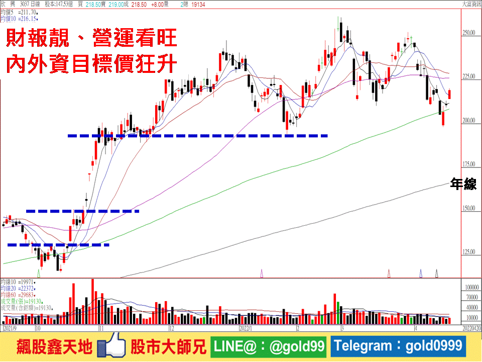 (3)內外資喊買欣興至少三字頭:欣興2021年第四季財報超標,上調2022年資本支出,對長遠展望優於市場預期,利多爆發力強大。高盛證券指出,從欣興經營管理階層對ABF市況展望、ABF設備交期拉長、高階ABF專案貢獻度提高,加上ABF客戶更積極提前確保產能,看好欣興股價將持續獲得市場追捧。