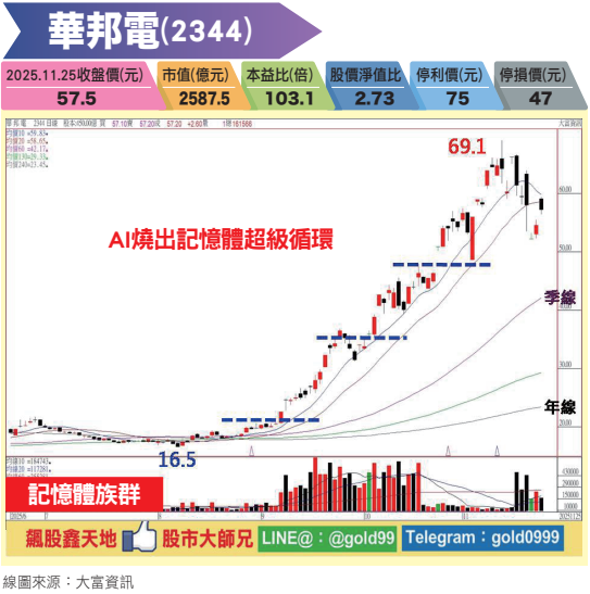 (2)12月10日Fed利率決策會議,不管降與不降,屆時,隨著不確定性因素消息釋出,若指數能順勢克服十日線及月線反壓,則一波絕地大反攻的機會將可望孕育而生,因此,趁著短線打底過程,當務之急就是要事先做好功課,哪些是被錯殺、被低估的AI股?先把它們放入口袋名單,到時候才不會手忙腳亂。