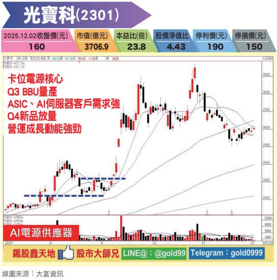 【個股推薦】光寶科(2301),全球第一家把電源供應器與電池備援電力模組BBU結合在一起的供應商,也是全球最大光耦合器供應商。主要利基題材有: